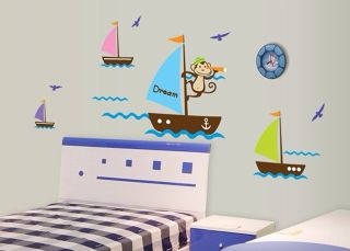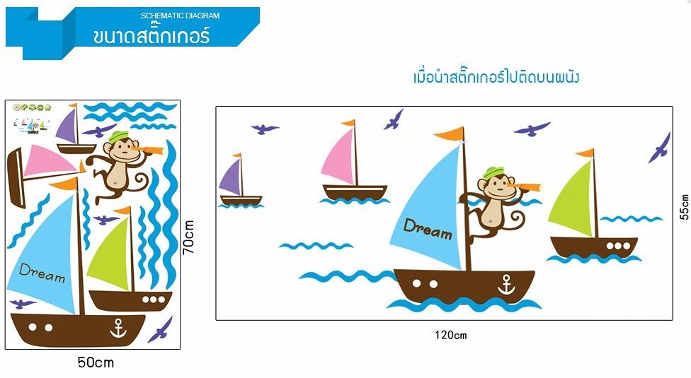ลิงน้อยจะพาคุณหนูๆแล่นเรือใบออกผจญภัย อย่ารอช้า เตรียมตัว แล้วติดสติ๊กเกอร์ ลายการ์ตูนลิงน้อยแล่นเรือใบออกทะเล เดินทางไปด้วยกัน