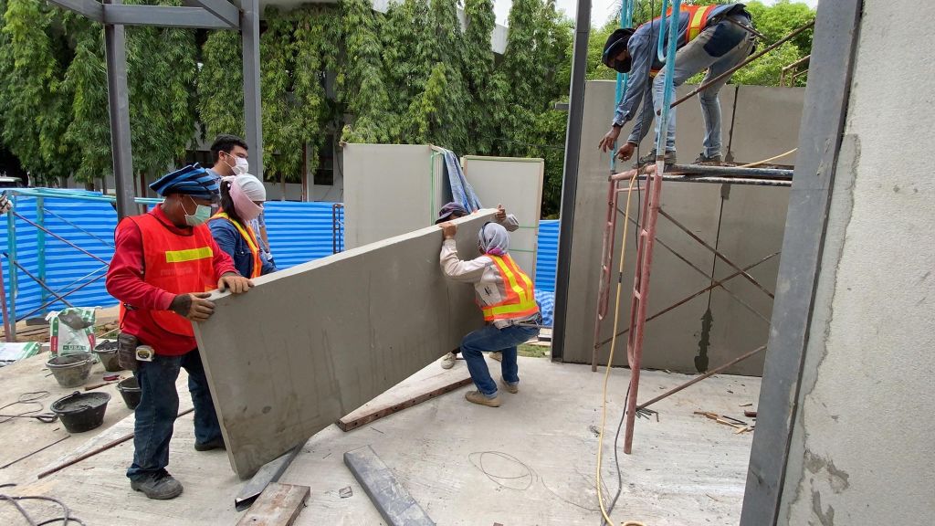 - ซึ่งเศษที่เกิดจากการผลิต และตัดแต่งนำกลับมาใช้ผลิตใหม่ได้อีก CI ใกล้เคียง 0 หรือผนังที่ไม่ใช้แล้วต้องการรื้อถอน ก็สามารถนำกลับมาตัดแต่ง และเก็บเศษมาผลิตใหม่ได้